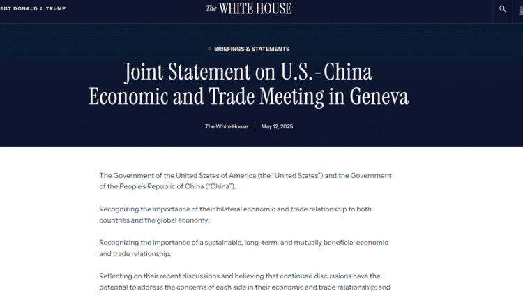 The White House announced on May 12 that the two countries will reduce their respective tariffs to 10% for an initial 90-day period beginning May 14 — a 24% cut from current levels.