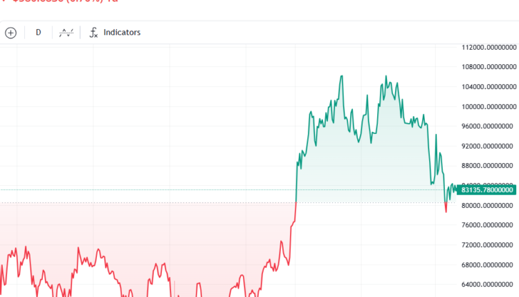 Bitcoin’s (BTC) price is currently down 23% from its all-time high of over $109,000 recorded on Jan. 20, on the day of US President Donald Trump’s inauguration, Cointelegraph Markets Pro data shows.