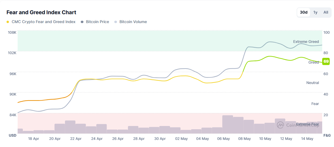Despite the attack on the world’s third-largest cryptocurrency exchange, investor sentiment remains optimistic, with the Fear & Greed Index remaining firmly in the “Greed” zone above 69, according to CoinMarketCap data.