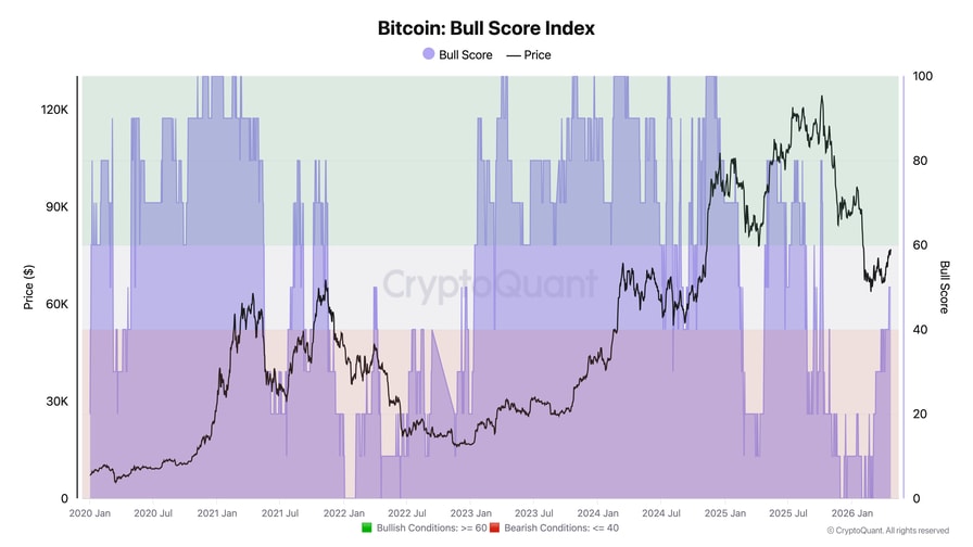 New data from onchain analytics platform CryptoQuant places the spotlight on the Bitcoin Bull Score Index (BSI).