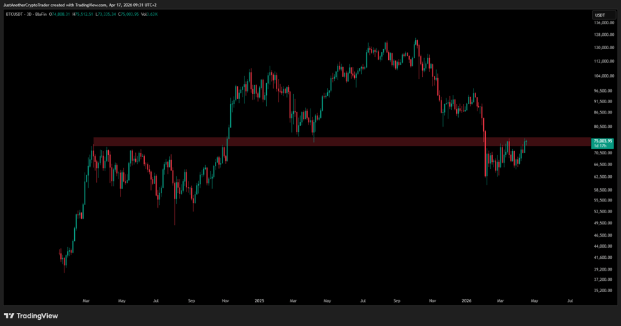 BTC/USDT three-day chart. Source: J. A. Maartunn/X