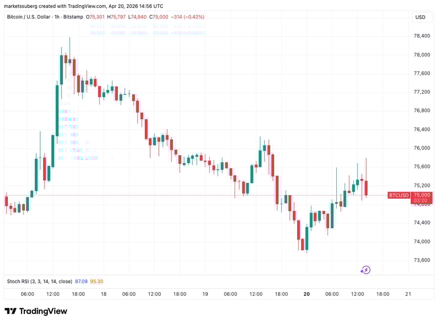Data from TradingView showed 2.5% daily gains for BTC/USD, which had closed the week below $74,000.