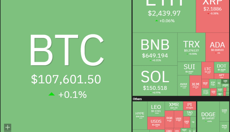 Bitcoin (BTC) made a solid comeback this week, rising more than 6%, indicating strong buying near the $100,000 level. The bulls are trying to strengthen their advantage by sustaining the price above $108,000. Popular trader and analyst Rekt Capital said in a post on X that if Bitcoin achieves its highest weekly close, that “would enable Bitcoin to enjoy a new uptrend into new All Time Highs.”