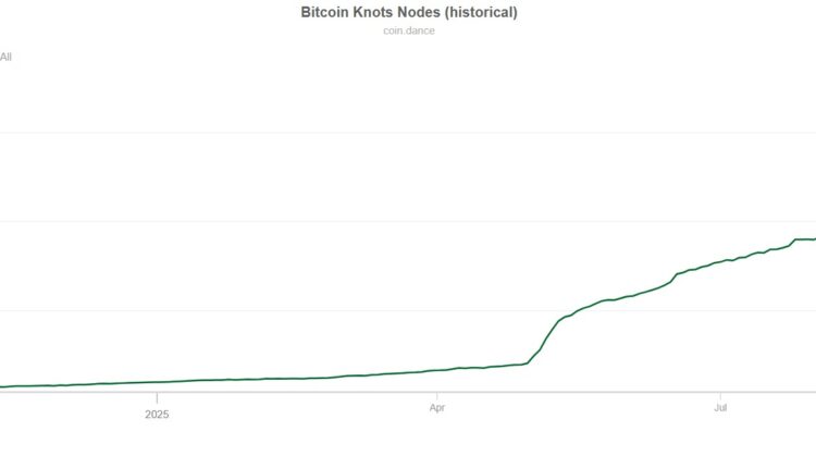 Node operators are flocking to Bitcoin Knots as OP_RETURN splits opinions. Source: Coin Dance