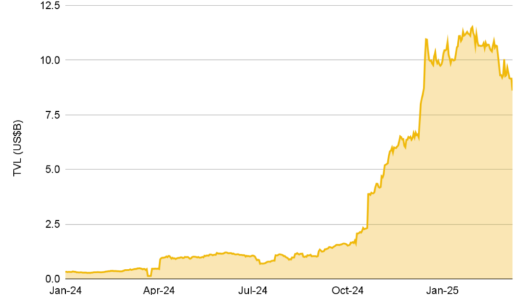 Bitcoin DeFi, total value locked, 2025 chart. Source: Binance Research