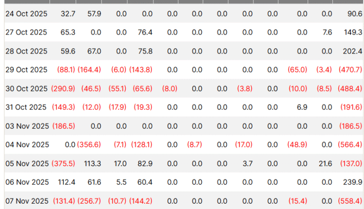 Bitcoin ETFs were mostly in the red since the October crash, with daily outflows reaching up to $700 million, which pointed to a “broader de-risking phase among ETF investors,” wrote crypto data platform Glassnode, in a Tuesday X post