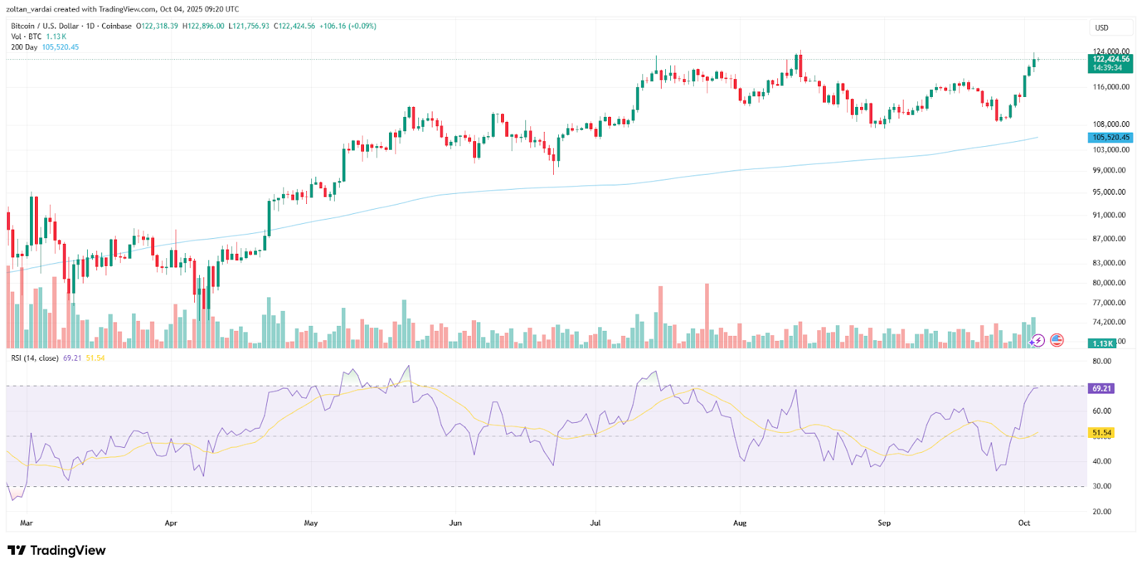 This week’s $3.2 billion briefly pushed Bitcoin’s price above $123,996 on Friday, marking an over six-week high last seen on Aug. 14 for the world’s first cryptocurrency, TradingView data shows.