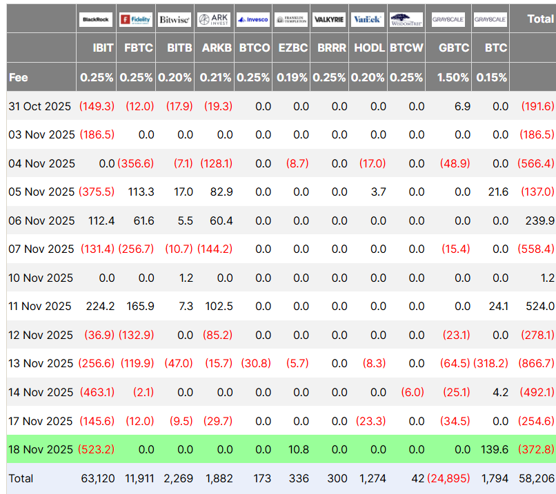 The latest outflows bring November’s total to $2.96 billion, already making it the second-worst month for spot Bitcoin ETFs. BlackRock alone accounted for $2.1 billion of those outflows.