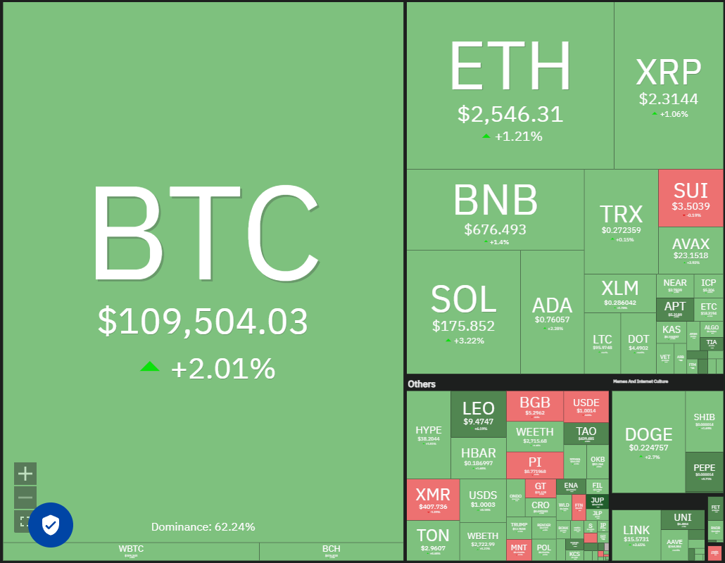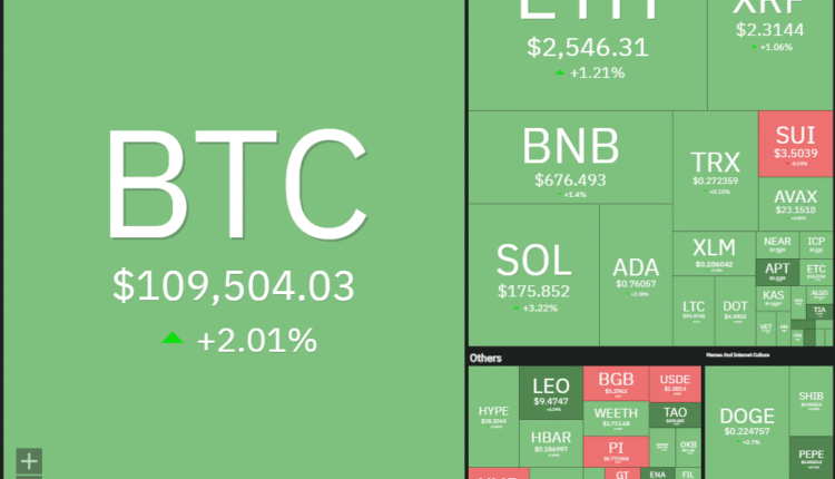 Bitcoin bulls are trying to push and sustain the price above $109,588, indicating that every minor dip is being purchased.