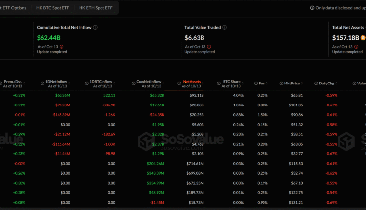 As of this writing, total cumulative inflows remain at $62.44 billion, with total net assets across all spot BTC ETFs reaching $157.18 billion, or 6.81% of Bitcoin’s market cap. Overall, the funds saw $2.71 billion in inflows last week.