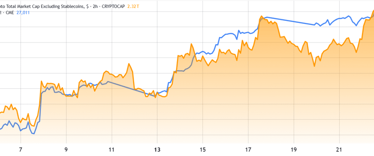 Nasdaq 100 futures (left) vs. Total crypto market capitalization, USD (right). Source: TradingView