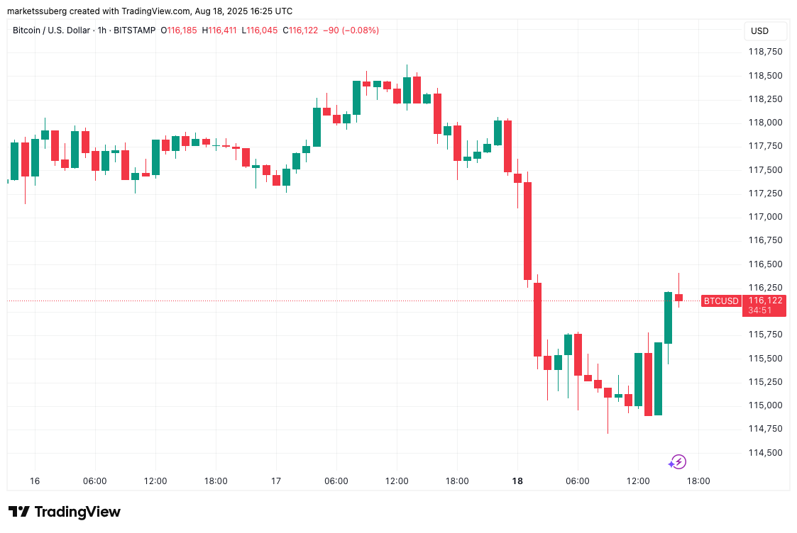 Bitcoin (BTC) returned to $116,000 after Monday’s Wall Street open as bulls fought to set off a short squeeze.