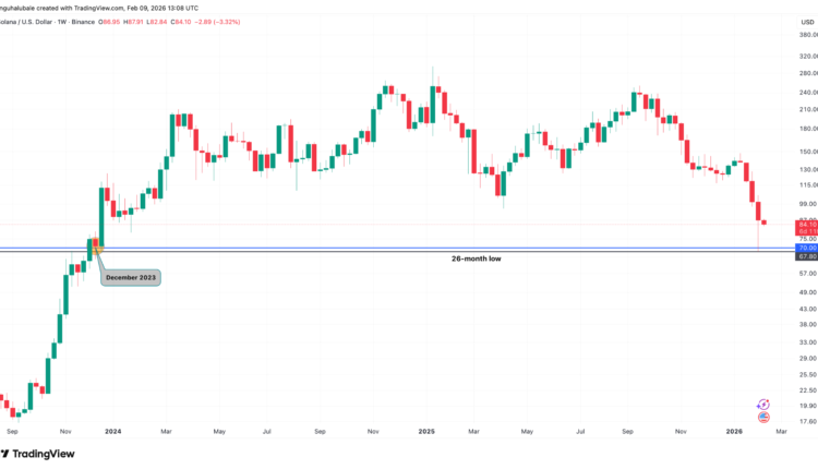 SOL price has already lost over 72% of its value since a cycle top of around $295 in January 2025. In doing so, its price confirmed a head-and-shoulders (H&S) pattern on multiple time frames.