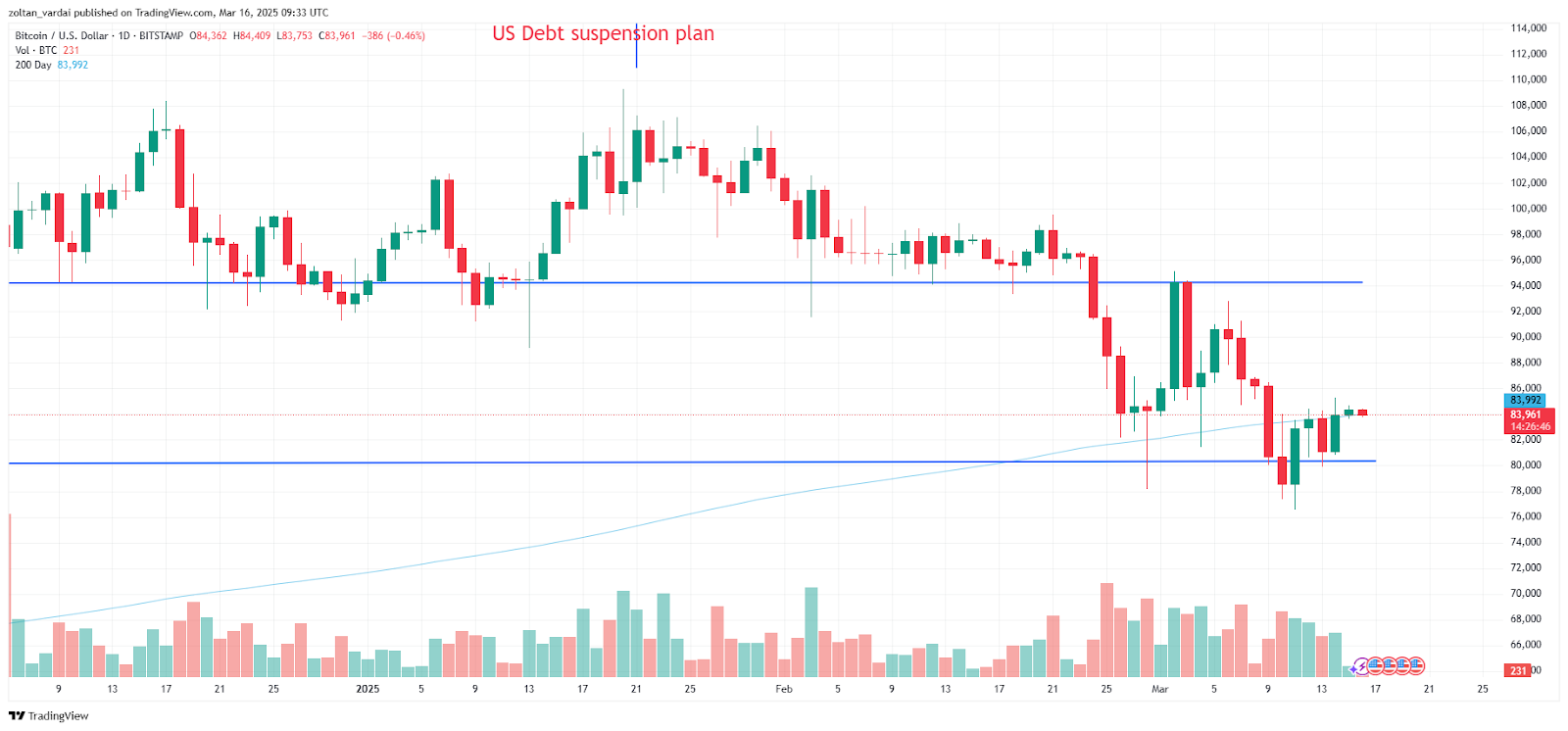 In an optimistic sign for price action, Bitcoin staged a daily close above $84,000 on March 15, for the first time in over a week since March 8, TradingView data shows.
