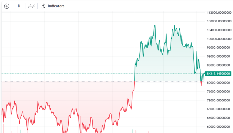 Bitcoin’s (BTC) price is currently down 22% from its all-time high of over $109,000 recorded on Jan. 20, on the day of US President Donald Trump’s inauguration, Cointelegraph Markets Pro data shows.