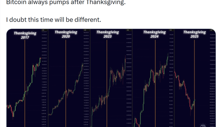 Bitcoin price performance after Thanksgiving. Source: Mister Crypto