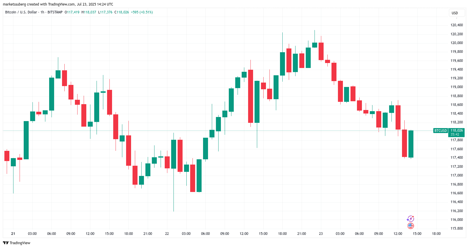 The pair had passed the $120,000 mark after the daily open, but momentum quickly vanished as sell-side pressure took over.