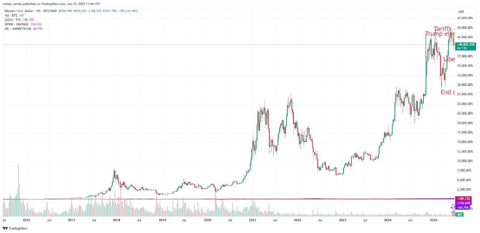 While Bitcoin briefly dipped below the psychologically important $100,000 level, it appears to have stabilized for now. Still, further geopolitical shocks could pressure prices again.