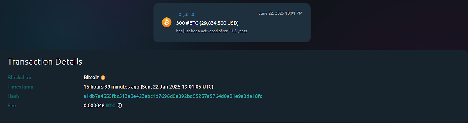 The unknown investor sold 300 Bitcoin (BTC) for $29.8 million on Sunday after patiently holding the coins for more than 11 years, according to Whale Alert.