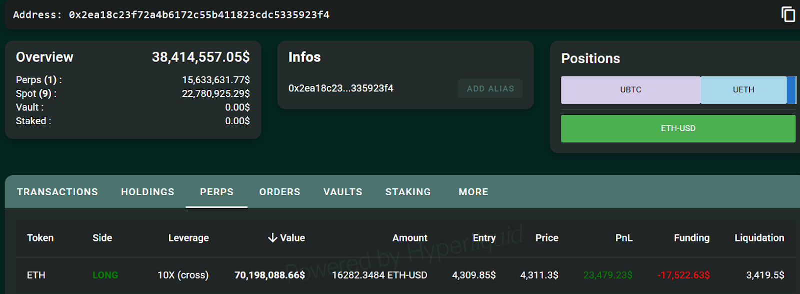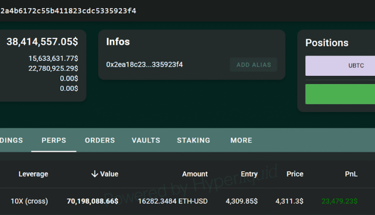 After selling all their Bitcoin through the decentralized exchange Hyperliquid, they opened a $282 million long position on Ether (ETH) through three separate accounts, according to a pseudonymous onchain analyst MLM.