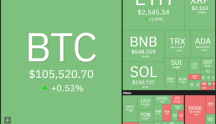Bitcoin found support at the 50-day simple moving average ($103,604) on Friday, but the bulls are struggling to push the price above the 20-day exponential moving average ($106,028). That suggests a lack of buying at higher levels.
