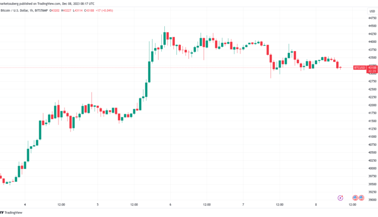 Bitcoin (BTC) struggled to hold above $43,000 into Dec. 8 as an altcoin surge put Ether (ETH) in the spotlight.