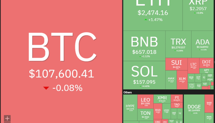 Bitcoin (BTC) has started the week on a soft note, with the bears trying to pull the price below the $107,000 level. Bitcoin remains on track for a positive monthly close in June as long as it stays above $104,600. If that happens, it will only be the second occasion since 2020 that Bitcoin has closed June in the green, per CoinGlass data.