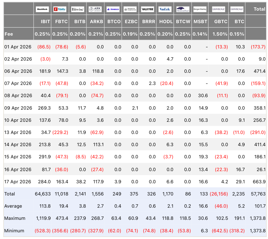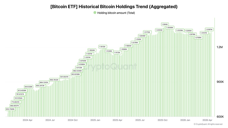 In BTC terms, the ETFs’ total holdings are now at their highest since November 2025.