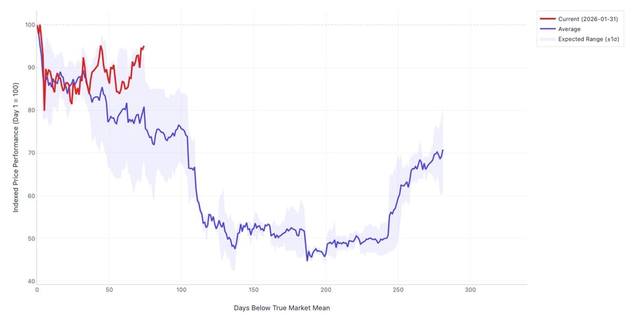 “The signal isn’t ‘all clear’ — it’s ‘watch closely.’ Reclaiming the TMM and stabilizing there would mark active investors returning to profit, historically a strong reset point for momentum.”