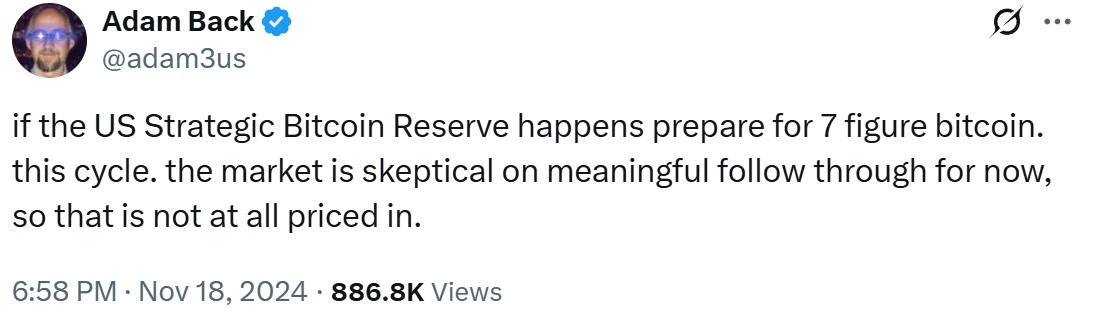 Blockstream CEO Adam Back said in November that Bitcoin could break $1 million “this cycle” if the US follows through with plans to establish a Strategic Bitcoin Reserve. In March, the White House did just that, though it has yet to be codified into law by Congress.
