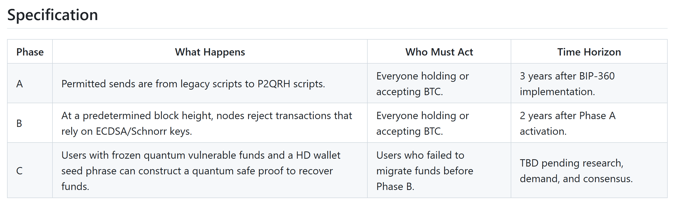 The proposal suggests a phased approach to address the risks posed by quantum computers. The first phase suggests stopping people from sending Bitcoin to older, less secure addresses that quantum computers could easily break.