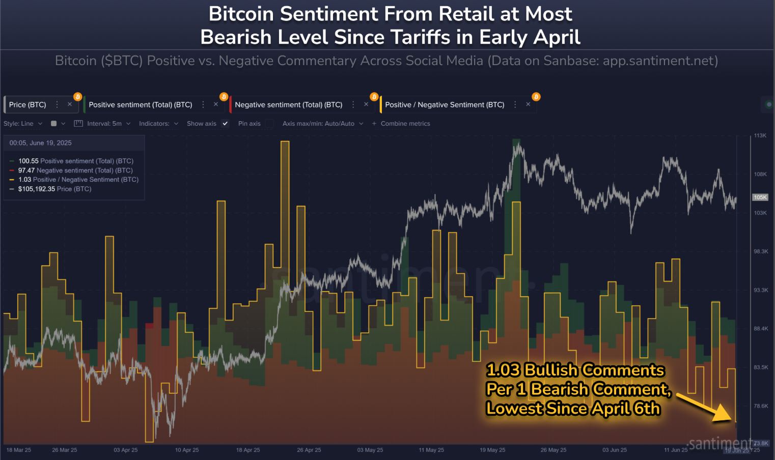 He added the firm’s social media analysis found that “there are just 1.03 bullish comments for every 1 bearish comment, which hasn’t happened since peak FUD [fear, uncertainty and doubt] during initial tariff reactions on April 6.”