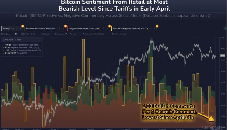 Retail traders’ sentiment toward Bitcoin is a near-even split between those who think it will fall and those who believe it will gain, as attitudes to the cryptocurrency are at a low last seen in April when Donald Trump’s global tariffs reveal tanked global markets.