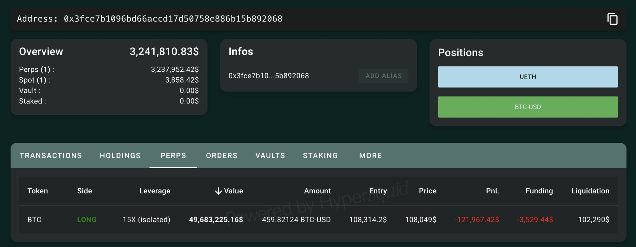 Notably, whale wallet “0x3fce” increased its Bitcoin long position to $49.7 million, while whale wallet “0x89AB” opened a 6x leveraged long position worth $14 million, wrote blockchain data platform Lookonchain, in a Wednesday X post.