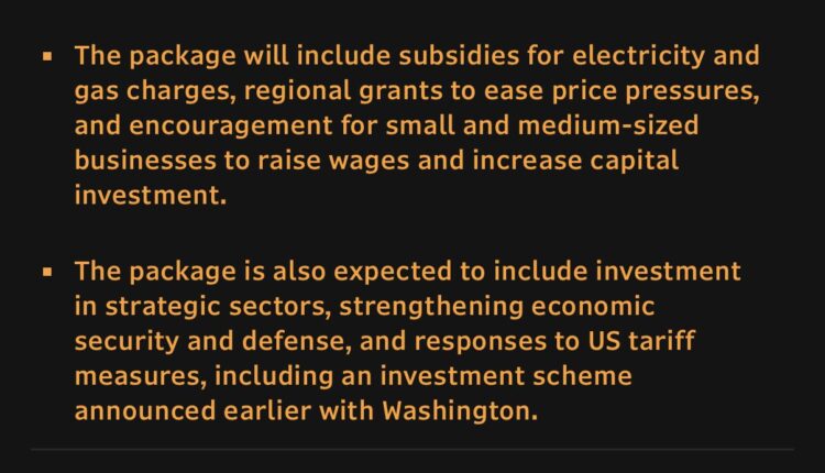 The stimulus measures include subsidies for electricity and gas charges, as well as regional grants to ease price pressure and encourage small to medium-sized businesses to raise wages.
