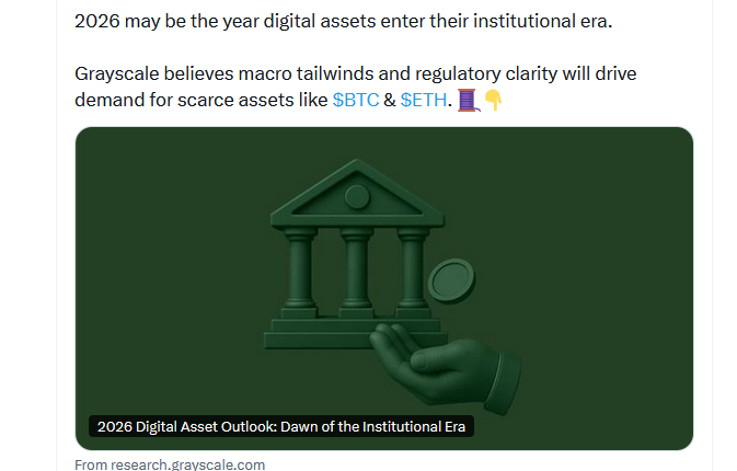 “In 2026, Grayscale expects Congress to pass bipartisan crypto market structure legislation, which will likely cement blockchain-based finance in U.S. capital markets and facilitate continued institutional investment.”