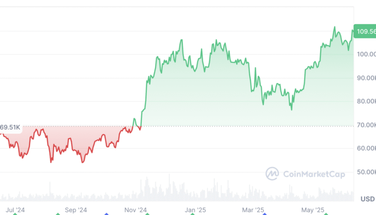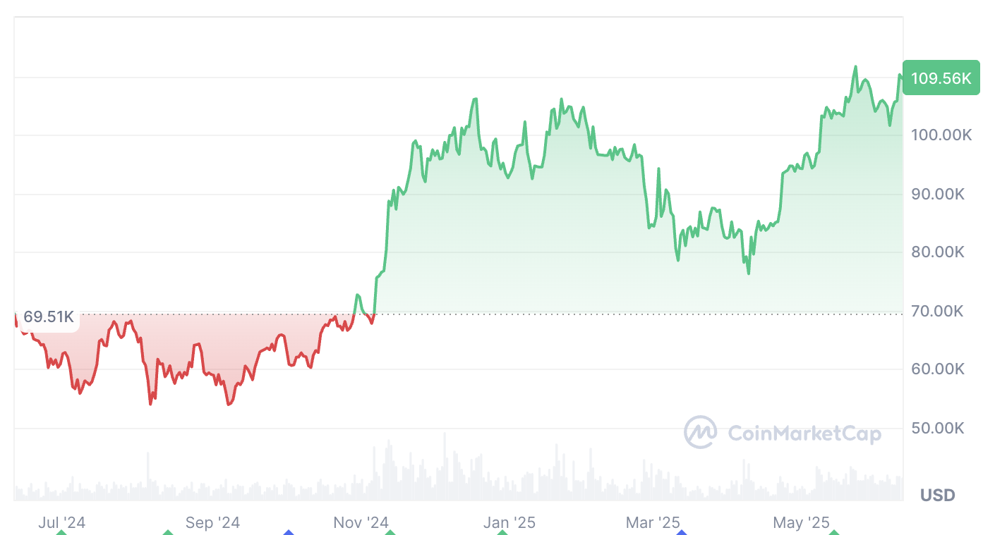 Bitcoin is trading at $109,679 at the time of publication, just 2.1% off its $111,970 all-time high, which it reached on May 22, according to CoinMarketCap.