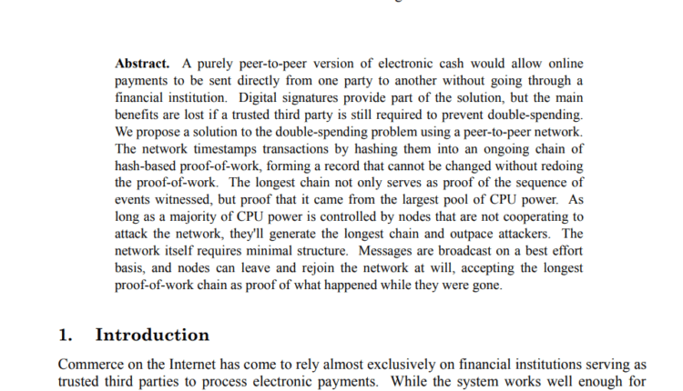 The document, titled “Bitcoin: A Peer-to-Peer Electronic Cash System,” described a decentralized, peer-to-peer network capable of preventing double-spending through proof-of-work (PoW) consensus.