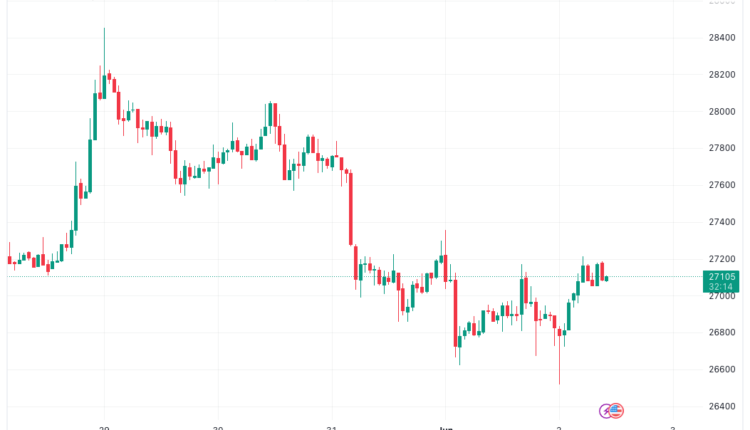 I remain short while we are below $27,500 legends. No change in my play here, as only ETH is taking the stage right now pic.twitter.com/UQlP7heLxP