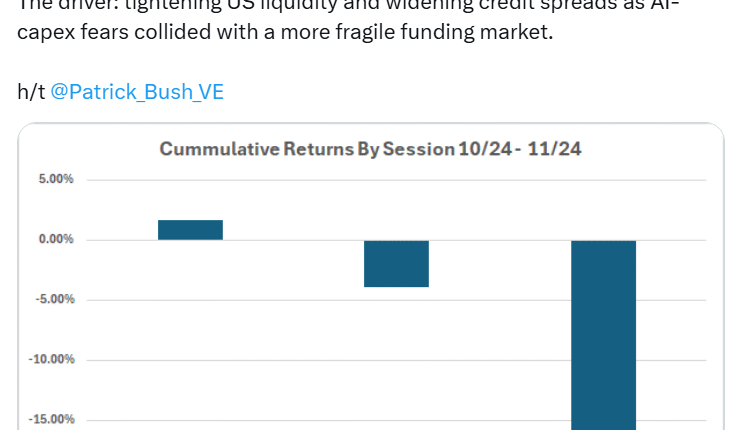 He pointed to tightening US liquidity and widening credit spreads as key drivers, as fears over the large‑scale capital expenditures tied to artificial intelligence collided with a more fragile funding market.
