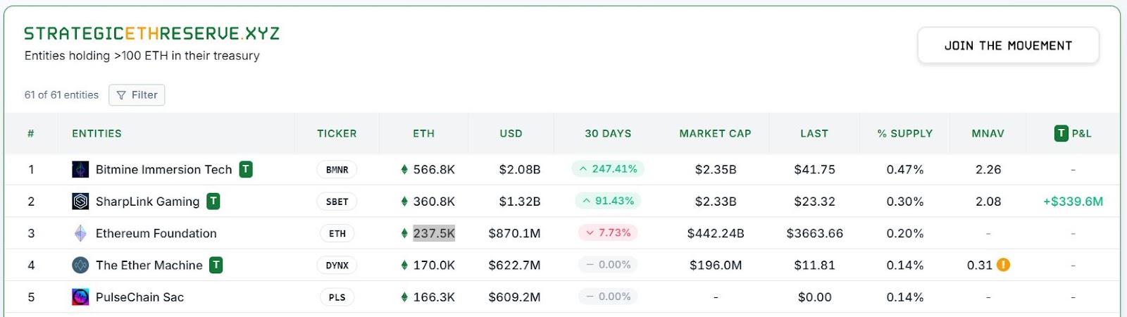 BitMine is the largest Ether treasury firm after its latest purchase. Source: Strategic Ether Reserves