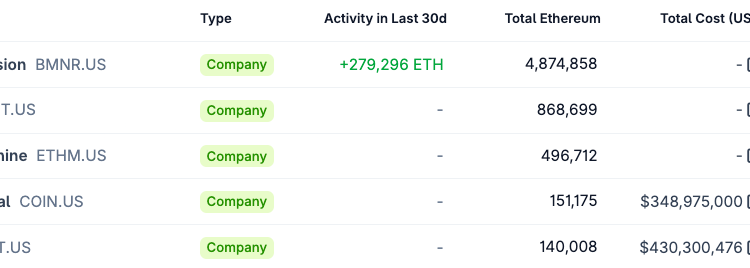 The latest update extends Bitmine’s lead among public company Ether treasuries as crypto balance sheet strategies continue to spread across public markets.