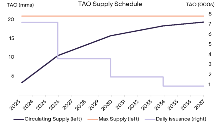 TAO follows a supply schedule similar to Bitcoin’s. Source: Grayscale Research