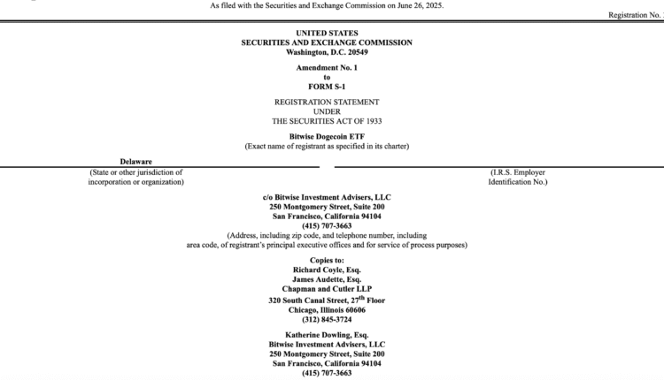 Bitwise has amended its proposed Dogecoin and Aptos exchange-traded funds to include in-kind redemptions, according to filings on Thursday. The updates come as discussions around altcoin ETFs and redemption structures gain traction with US regulators.