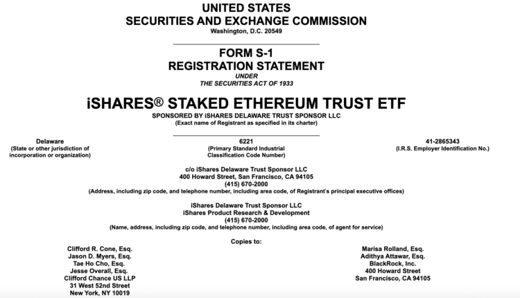 In a Friday filing with the US Securities and Exchange Commission, BlackRock filed a Form S-1 registration statement for its iShares Staked Ethereum Trust exchange-traded fund. The filing is part of the SEC’s process for companies to list investment vehicles such as ETFs, but does not guarantee approval.