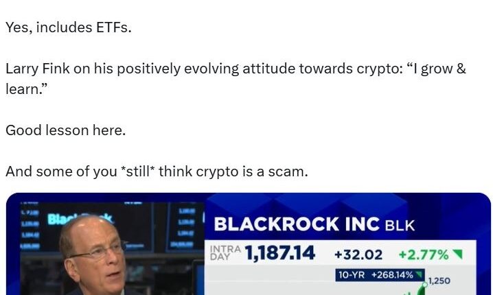 Fink said during his interview with CNBC that he was a critic in the past, but over time, his stance shifted because “I grow and learn.”