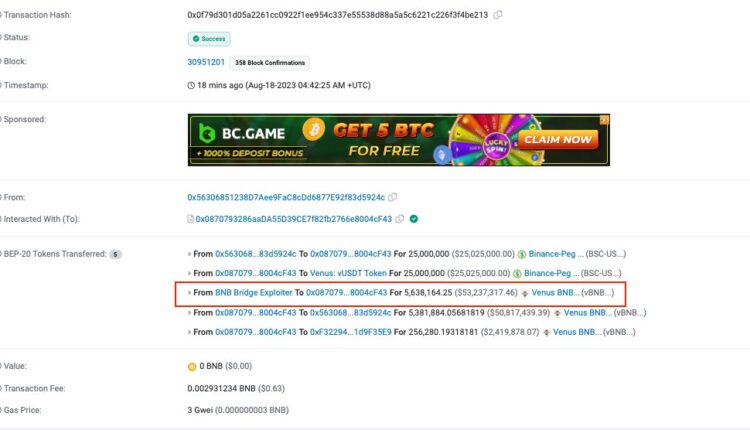 On Oct. 6, the cross-chain bridge by blockchain network BNB Smart Chain was suspended because of an exploit that allowed the hackers to make off with 2 million BNB tokens, which were worth around $568 million at the time of the theft.