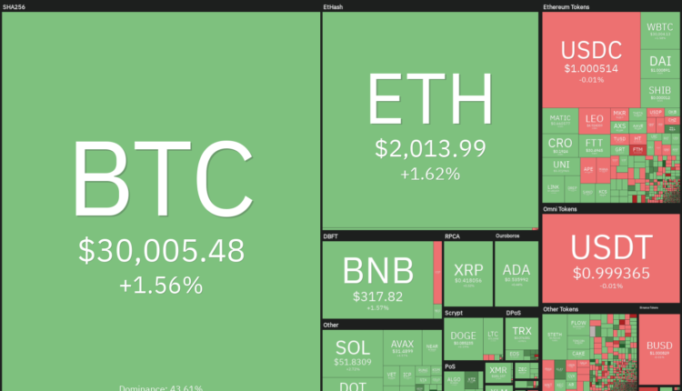 Above the downtrend line, the BTC/Tether (USDT) pair could rise to the 20-day exponential moving average (EMA) of $31,887. The bears are likely to defend this level with vigor. If the price turns down from the 20-day EMA, the bears will once again try to sink the pair below $28,630.