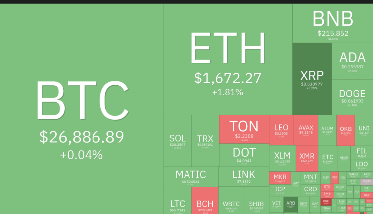 Bitcoin (BTC) is attempting to trade above $27,000 which is a positive sign. In the past few days, Bitcoin’s price held up above $26,000 in adverse conditions when the United States dollar index (DXY) was rising sharply and the S&P 500 index (SPX) was plunging. This suggests that selling dries up at lower levels.