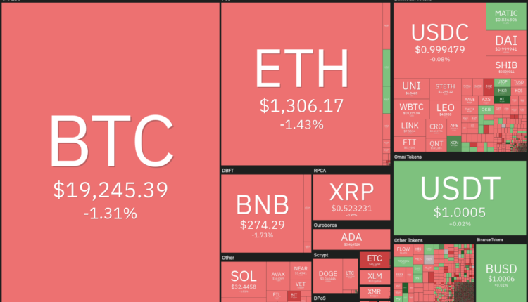 Bitcoin broke below the 20-day exponential moving average (EMA) ($19,584) on Oct. 7 and then successfully defended the level between Oct. 8 to 10. The sellers are trying to strengthen their position further by pulling the price below the uptrend line.